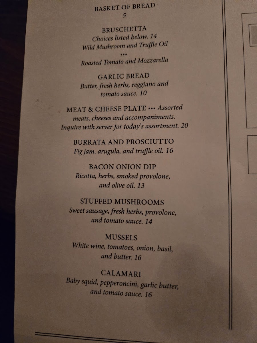 - Start your dining experience with delectable appetizers like bruschetta and stuffed mushrooms, perfect for sharing.